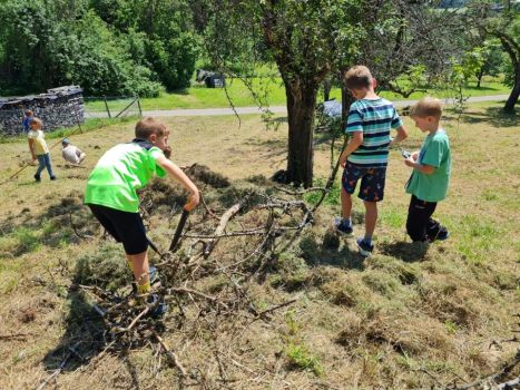 Unser unschlagbares Betreuungsteam Frau Morgenroth, Herr Ven und Frau Lipp haben mit den Betreuungskindern in diesem Jahr rein gar nichts ausgelassen: Spiel ohne Ende, Sporteinheiten in der Halle, Ausflüge in den Wald, Fleißarbeiten auf der Wiese, Steinlachwanderung, Basteln, Kleben, Kochen, Backen, Schnitzen, Sägen, Hüpfen, Freuen, Purzelbäume schlagen, Lesen, Feiern, Quatsch machen, Lager bauen und noch so vieles mehr!