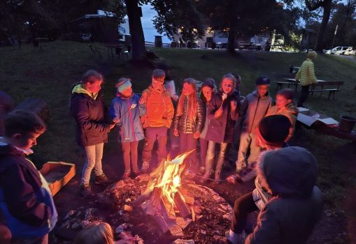 Die Mittelgruppen lila, grün und türkis haben sich auf dem Roßberg die Klinke in die Hand gegeben. Wandern, Lagerfeuer, Kino- und Spieleabend, Übernachten im Turm, gemeinsames Frühstück und noch vieles mehr standen auf dem Programm. Und offensichtlich habt ihr eure Ausflüge genießen können!