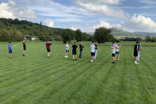 Die Jungs aus Opal und Smaragd haben das schöne Herbstwetter für eine Einheit Speerwurf genutzt.