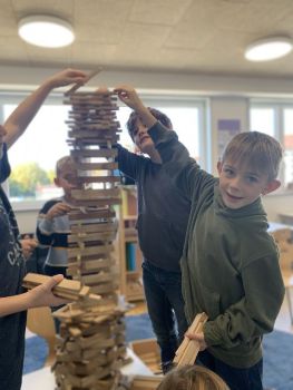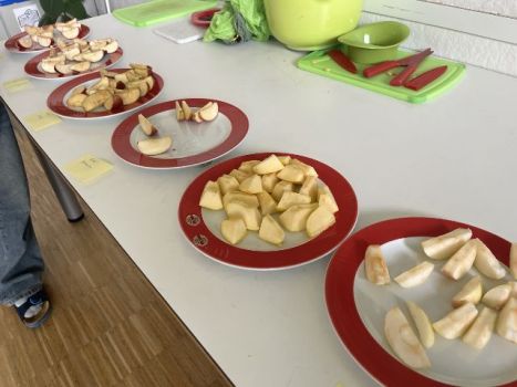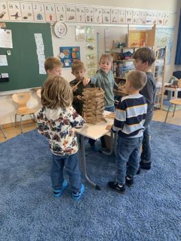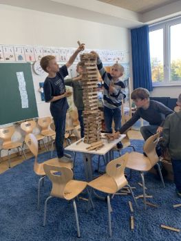 Dienstags ist jede Menge los in den Untergruppen, denn es ist Werkstatt-Tag. Alle Kinder dürfen sich aus sechs Angeboten ihre Lieblings-Werkstatt aussuchen und sich einwählen. In der Wackelwerkstatt wurden unter anderem Wackeltürme gebaut - und wie hoch die geworden sind! In der Apfelwerkstatt wurde alles aus Äpfeln hergestellt, was die Kinder sich gewünscht haben! In der Blätterwerkstatt ist tolle Kunst entstanden - unter anderem ein wunderschönes Naturbild. Die Wiesenwerkstatt hat die Wiese winterfest gemacht und neue Bäume gepflanzt.