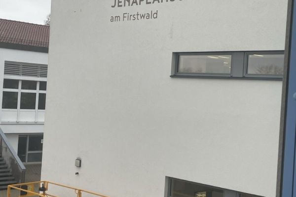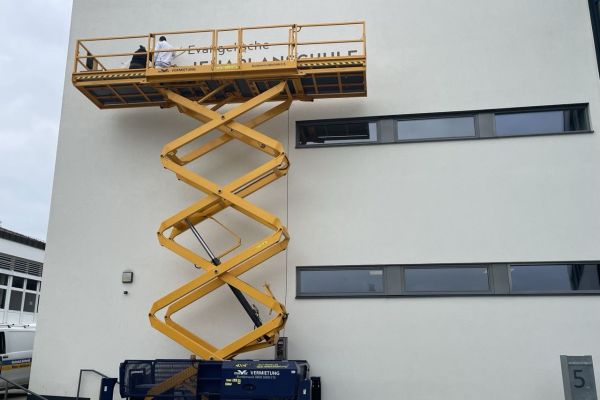 Schon von Weitem blitzt unser nagelneues Fassadenlogo.