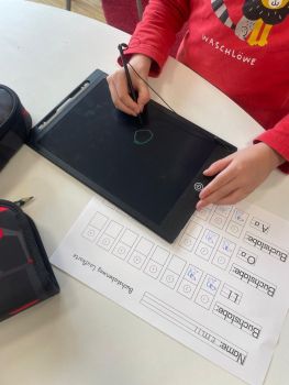 Wie spurt man die vielen neuen Buchstaben und Zahlen richtig? Und wie soll ich mir das alles merken? Mit großen Buchstaben- und Zahlenstraßen haben unsere Jüngsten geübt und sind stolz auf ihre riesigen Fortschritte.
