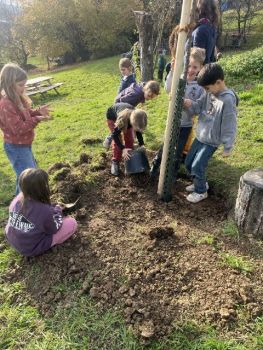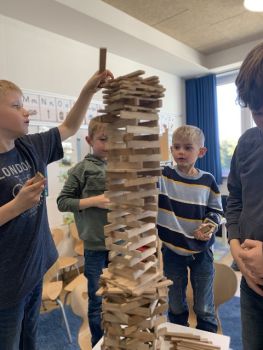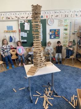 Dienstags ist jede Menge los in den Untergruppen, denn es ist Werkstatt-Tag. Alle Kinder dürfen sich aus sechs Angeboten ihre Lieblings-Werkstatt aussuchen und sich einwählen. In der Wackelwerkstatt wurden unter anderem Wackeltürme gebaut - und wie hoch die geworden sind! In der Apfelwerkstatt wurde alles aus Äpfeln hergestellt, was die Kinder sich gewünscht haben! In der Blätterwerkstatt ist tolle Kunst entstanden - unter anderem ein wunderschönes Naturbild. Die Wiesenwerkstatt hat die Wiese winterfest gemacht und neue Bäume gepflanzt.