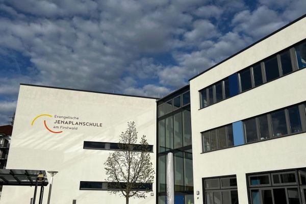 Schon von Weitem blitzt unser nagelneues Fassadenlogo.